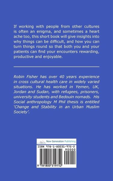 If working with people from other cultures is often an enigma, and sometimes a heart ache too, this short book will give insights into why things can be difficult, and how you can turn things round so that both you and your patients can find your encounters rewarding , productive and enjoyable.