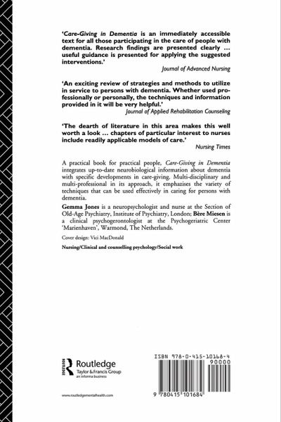 Gemma Jones is a neuropsychologist and nurse at the Section of Old-Age Psychiatry, Institute of Psychiatry, London; Bere Miesen is a clinical psychogerontologist at the Psychogeriatric Center 'Marienhaven', Warmond, The Netherlands.