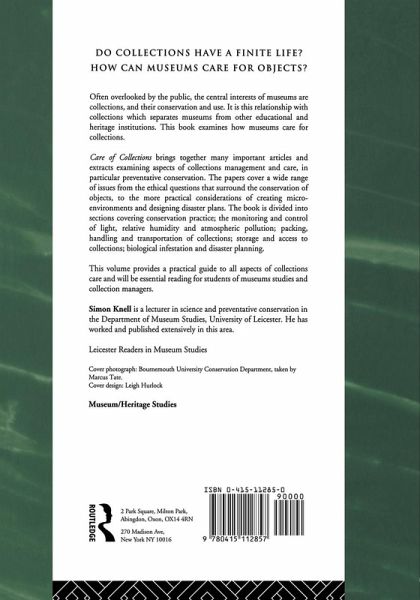 Confronting contemporary issues in museum practice, this collection provides a practical guide to all aspects of collections care. Contributors cover a wide range of issues including: conservation practice the monitoring and control of light relative humidity and atmospheric pollution packing, handling and transportation of collections storage and access to collections biological infestation disaster planning. Including material and sources that have, up until now, not easily been available, students of museum studies and proffessionals within the industry now have this invaluable aid to their work.