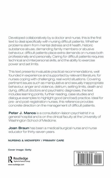 Developed collaboratively by a doctor and nurse team, this textbook deals specifically with nursing difficult patients. It gives invaluable practical recommendations, well founded in experience and supported by literature for nurses coping with challenging, real world situations.