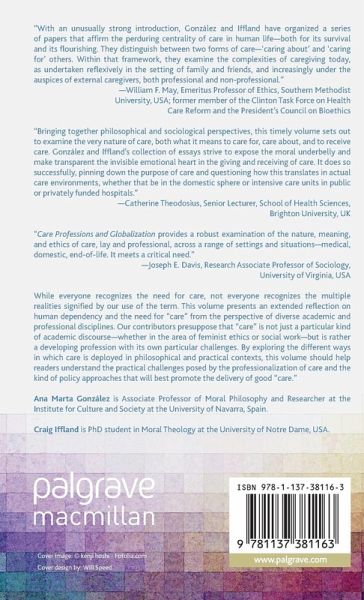 Acknowledgements A Note on the Social Trends Institute Notes on Contributors Introduction: The Challenges of 'Care'; Ana Marta González and Craig Iffland Theoretical Perspectives 1. The Completion of Care - With Implications for a Duty to Receive Care Graciously; Eva Feder Kittay 2. Carefree in Barcelona; David H. Smith 3. 'Moved by the Suffering of Others': Using Aristotelian Theory to Think about Care; Kim Redgrave 4. Social Contract Theory and Moral Agency: Understanding the Roots of an Uncaring Society; Melissa Moschella 5. Emotional Work and Care as Relationship: some Particularities and Consequences; Alejandro García Practical Perspectives 6. Socio-Economic Impact of the Work of the Home; M. Sophia Aguirre 7. Working in the ICU: A Study on the Normalization of Tension in Health Care Provision; Ambrogia Cereda 8. Professionalizing Care - a Necessary Irony? Some Implications of the 'Ethics of Care' for the Caring Professions and Informal Caring; Richard Hugman 9. Domestic Work: Judgments and Biases Regarding Mundane Tasks; María Pía Chirinos 10. The Moral Sense of Nursing Care; Mercedes Pérez 11. A Professional Perspective on End of Life Care; Carlos Centeno