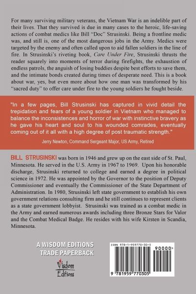 For many surviving military veterans, the Vietnam War is an indelible part of their lives. That they survived is due in many cases to the heroic, life-saving actions of combat medics like Bill "Doc" Strusinski. Being a frontline medic was, and still is, one of the most dangerous jobs in the Army. Medics were targeted by the enemy and often called upon to aid fallen soldiers in the line of fire. In Strusinski's riveting book, Care Under Fire, Strusinski thrusts the reader squarely into moments of terror during firefights, the exhaustion of endless patrols, the anguish of losing friends despite best efforts to save them, and the intimate bonds created during times of desperate need. This is a book about war, yes, but even more about how one man was transformed by his "sacred duty" to offer care under fire to the young soldiers he fought beside.