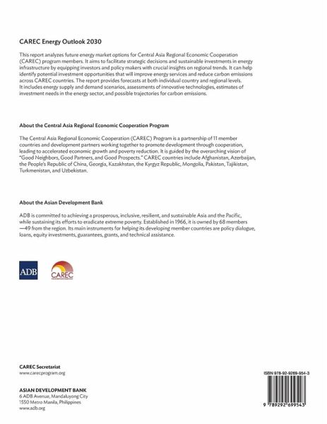 This report analyzes future energy market options for Central Asia Regional Economic Cooperation (CAREC) program members to help facilitate sustainable energy infrastructure investment. The report provides forecasts at individual country and regional levels. It aims to equip investors and policy makers with insights on regional trends to help identify potential investment opportunities that will improve energy services and reduce carbon emissions across CAREC countries. It includes energy supply and demand scenarios, assessments of innovative technologies, estimates of investment needs in the energy sector, and possible trajectories for carbon emissions.