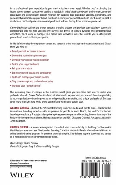 As a professional, your reputation is your most valuable career asset. Whether you're climbing the ladder at your current company or seeking a new job, in today's fast-paced work environment, you must proactively and continuously position yourself for success. Your credibility, visibility, personality, and personal style all make up your brand. Build and nurture your personal brand and you'll make yourself a must-have, can't-fail professional--and you'll do it without having to be someone you're not. Career Distinction outlines the proven personal branding process and provides case studies of successful professionals that will help you not only survive, but thrive, in today's dynamic and ultracompetitive workplace. You'll learn to manage your brand with innovative tools that enable you to differentiate yourself and stand out from your peers. In this definitive step-by-step guide, career and personal brand management experts Arruda and Dixson show you how to: * Brand yourself for career success * Determine how others perceive you * Develop your unique value proposition * Define your target audience * Tell your brand story * Express yourself clearly and consistently * Build and manage your online identity * Stay on-message and on-brand every day * Increase your "career karma" The increasing pace of change in the business world gives you less time than ever to make your professional mark. Career Distinction demonstrates how to express who you are and the value you bring to your organization--branding you as an indispensable, memorable, and unique professional. Success takes more than just hard work; brand yourself and watch your career soar.
