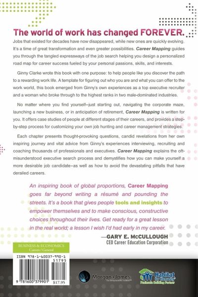 "Career Mapping" guides you through the tangled expressways of career options to help you design your personalized road map to create job and career choices. Ginny Clarke wrote this book with one purpose: to help people like you discover the path to a rewarding work life. No matter where you find yourself---just starting out, navigating the corporate maze, launching a new business, or in anticipation of retirement, "Career Mapping" is written for you. It offers case studies of people at different stages of their careers, and provides a step-by-step process for customizing your own job hunting and career management strategies.