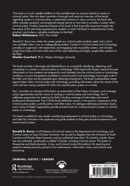 This book provides a thorough and directed focus on successfully identifying, obtaining, and succeeding in a career in criminal justice or criminology.