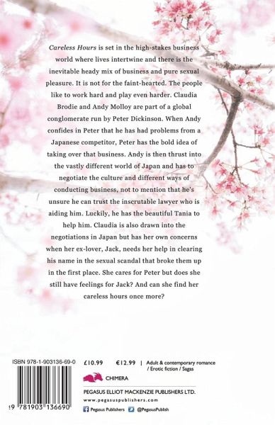 Careless Hours is set in the high-stakes business world where lives intertwine and there is the inevitable heady mix of business and pure sexual pleasure. It is not for the faint-hearted. The people like to work hard and play even harder. Claudia Brodie and Andy Molloy are part of a global conglomerate run by Peter Dickinson. When Andy confides in Peter that he has had problems from a Japanese competitor, Peter has the bold idea of taking over that business. Andy is then thrust into the vastly different world of Japan and has to negotiate the culture and different ways of conducting business, not to mention that he's unsure he can trust the inscrutable lawyer who is aiding him. Luckily, he has the beautiful Tania to help him. Claudia is also drawn into the negotiations in Japan but has her own concerns when her ex-lover, Jack, needs her help in clearing his name in the sexual scandal that broke them up in the first place. She cares for Peter but does she still have feelings for Jack? And can she find her careless hours once more?