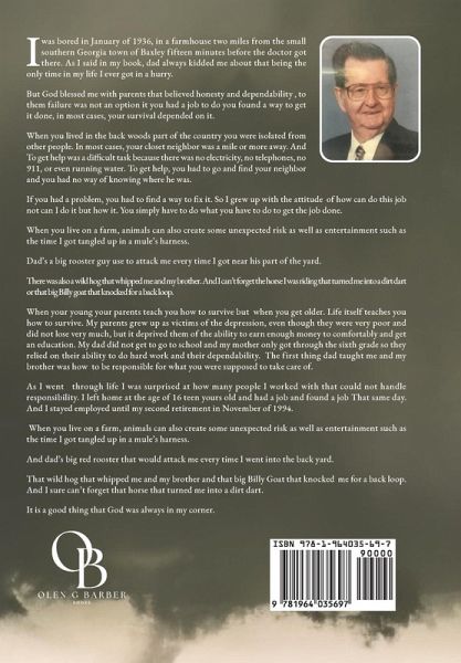 I grew up in the aftermath of the great depression in the rural area of north Florida. God blessed me with loving parents that instilled in me the values of honesty and kindness to others. They both came from large families that were survivors of the depression. It was their examples of pride, hard work, and ability to find a way to get the job done that got me through my difficulties in life. God blessed me with the opportunities I needed, and my parents gave me the wisdom to use them. It was those wonderful people who helped me along the way that inspired me to write this book about my life.…mehr