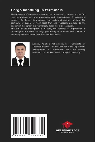 The relevance of the present topic of the monograph is related to the fact that the problem of cargo processing and transportation of horticultural products for large cities requires an early and optimal solution. The continuity of supply of fresh local fruit and vegetable products to the population throughout the year largely depends on its realization.The aim of the monograph is to study the specifics of organization of technological processes of cargo processing in terminals and creation of assembly and distribution terminals on their basis.