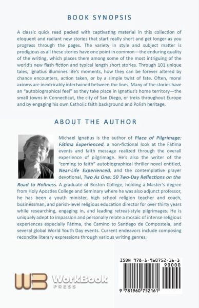 A classic quick read packed with captivating material in this collection of eloquent and radiant new stories that start really short and get longer as you progress through the pages. The variety in style and subject matter is prodigious as all these stories have one point in common-the enduring quality of the writing, which places them among some of the most intriguing of the world's new flash fiction and typical length short stories. Through 101 unique tales, Ignatius illumines life's moments, how they can be forever altered by chance encounters, action taken, or by a simple twist of fate. Often, moral axioms are inextricably intertwined between the lines. Many of the stories have an "autobiographical feel" as they take place in Ignatius's home territory-the small towns in Connecticut, the city of San Diego, or treks throughout Europe and by engaging his own Catholic faith background and Polish heritage.