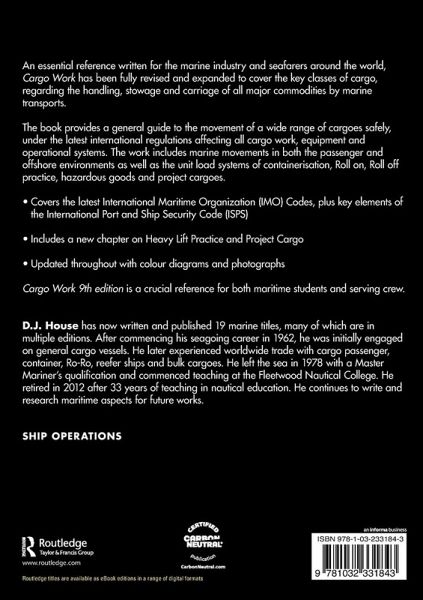 An essential reference written for the marine industry and seafarers around the world, Cargo Work has been fully revised and expanded to cover the key classes of cargo, regarding the handling, stowage and carriage of all major commodities by marine transports.