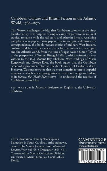 Tim Watson challenges the idea that Caribbean colonies in the nineteenth century were outposts of empire easily relegated to the realm of tropical romance while the real story took place in Britain. Analyzing pamphlets, newspapers, estate papers, trial transcripts, and missionary correspondence, this book recovers stories of ordinary West Indians, enslaved and free, as they made places for themselves in the empire and the Atlantic world, from the time of sugar tycoon Simon Taylor to the perspective of Samuel Ringgold Ward, African American eyewitness to the 1865 Morant Bay rebellion. With readings of Maria Edgeworth and George Eliot, the book argues that the Caribbean occupied a prominent place in the development of English realism. However, Watson shows too that we must sometimes turn to imperial romance - which made protagonists of rebels and religious leaders, as in Hamel, the Obeah Man (1827) - to understand the realities of Caribbean cultural life.