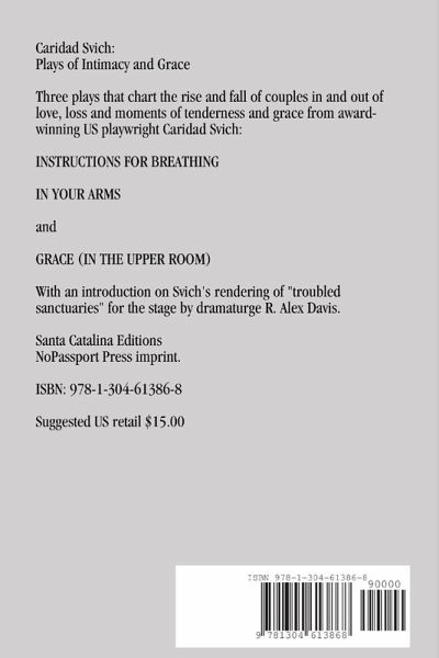 Three plays by US playwright Caridad Svich that chart the rise and fall of couples in and out of love, loss and moments of tenderness and grace: INSTRUCTIONS FOR BREATHING, IN YOUR ARMS and GRACE (IN THE UPPER ROOM). With an introduction on Svich's poetic rendering of "troubled sanctuaries" for the stage by dramaturge R. Alex Davis.