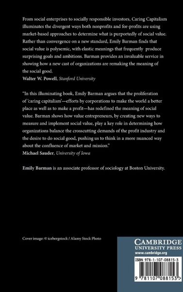 Companies are increasingly championed for their capacity to solve social problems. Yet what happens when such goods as water, education, and health are sold by companies - rather than donated by nonprofits - to the disadvantaged and when the pursuit of mission becomes entangled with the pursuit of profit? In Caring Capitalism, Emily Barman answers these important questions, showing how the meaning of social value in an era of caring capitalism gets mediated by the work of 'value entrepreneurs' and the tools they create to gauge companies' social impact. By shedding light on these pivotal actors and the cultural and material contexts in which they operate, Caring Capitalism accounts for the unexpected consequences of this new vision of the market for the pursuit of social value. Proponents and critics of caring capitalism alike will find the book essential reading.