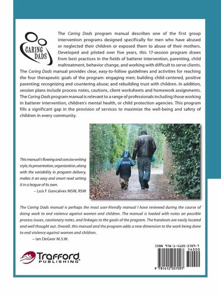 The Caring Dads program is one of the first group intervention manuals designed specifically for men who have maltreated their children and / or exposed them to domestic violence. Developed and piloted over five years, this 17-session program draws from best practices in the fields of batterer intervention, parenting, child maltreatment, behavior change, and working with resistant clients. The Caring Dads manual provides clear, easy-to-follow guidelines and activities for the implementation of the program and is a useful tool for both experienced and relatively novice service providers. Intervention strategies are adapted from motivational interviewing, psycho-educational, cognitive-behavioral and emotion-focused approaches. The program is organized around four therapeutic goals: engaging men; building positive parenting; recognizing and countering abuse; and rebuilding trust with children. Each goal is presented with a rationale and general overview followed by detailed session plans. In addition to providing specific group activities, session plans include process notes, client worksheets and homework assignments. Materials are further annotated with icons to draw attention to challenging issues and special considerations for clients who have perpetrated abuse towards their children's mothers. In addition, the manual includes introductory chapters that provide a roadmap for community planning in the delivery of service to this group of fathers. The formation of a community advisory committee is outlined, with specific issues for the committee to address to ensure that the program is implemented in a way that provides accountable service to children, women, men, and the larger community. Practical considerations such as facilitator selection and service agreements with clients are also addressed in the introductory chapters. The manual is written for a range of professionals who may be working in batterer intervention, children's mental health, or child protection agencies. The Caring Dads manual fills a significant gap in the provision of services to maximize the well-being and safety of children in every community.