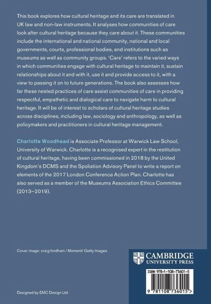 This book comprehensively analyses the UK law and non-law instruments that care for cultural heritage. Viewing the law as a community of care, working with other communities, brings new insights to our understanding of cultural heritage protection, making this book of interest to legal and heritage academics and practitioners.