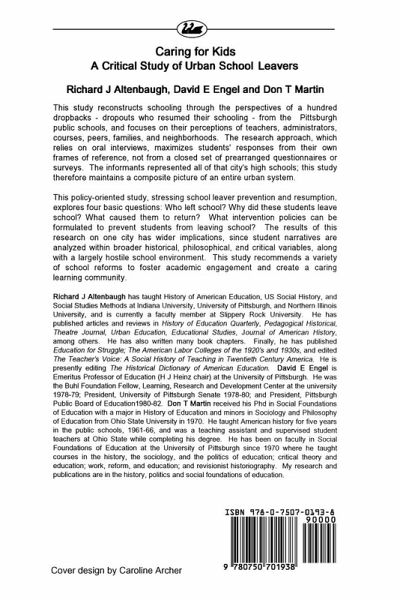 The official school drop-out figure in the US in recent years has been 25 per cent of the cohort. Estimates from large cities are often double these rates, and in some areas 60 per cent or worse. This text focuses on this problem in US schools, but from an unusual perspective. It is a study gained from in-depth interviews of 100 "stop-outs" - that is, those who dropped out but then decided to return to school. Four basic questions are posed by this text: who drops out?; why did they drop out?; what caused them to return?; and what intervention policies can be formulated to prevent students dropping out in the first place? The answers provided by this text for the last question are intended to make it of particular interest to school administrators.