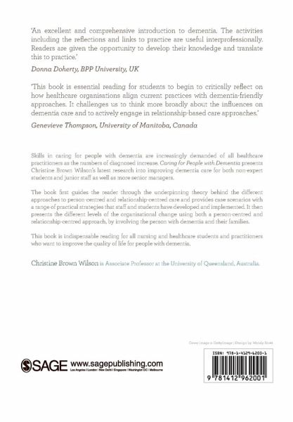Skills in caring for people with dementia are increasingly demanded of all health care practitioners as the numbers of diagnosed increase. Caring for People with Dementia presents Christine Brown Wilson s latest research into improving dementia care for both non-expert students and junior staff as well as more senior managers.