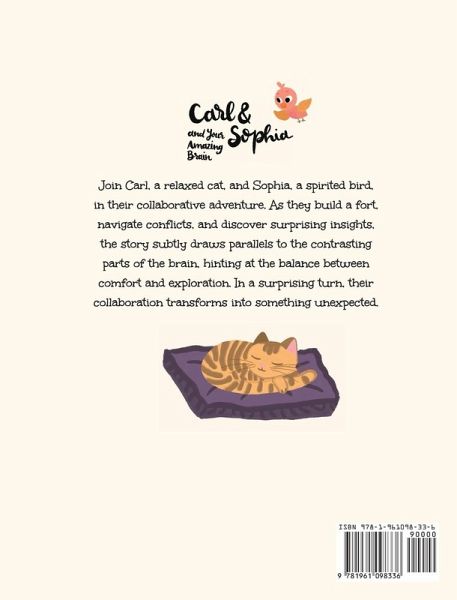 What happens when you mix a lazy cat with a hyperactive bird? ...A whole lot of fun! Carl is a super relaxed feline who loves nothing more than laying in his nice warm bed, waiting for his dinner. The only thing that annoys him is this bird who doesn't stop flapping about and constantly singing. Sophia is a bird with something to prove, always busy gliding about the trees outside in a whirlwind. One day she convinces Carl to help build an epic fort in the garden to beat the next door neighbors. With some surprising results the pair discover that their opposite viewpoints blend perfectly, much like how our emotions and feelings blend in our brains! Carl and Sophia and Your Amazing Brain is an inspirational rhyming storybook that will teach kids the importance of balance and managing feelings. Don't miss out on this one of a kind bedtime story book! Pick up your copy of Carl and Sophia and Your Amazing Brain today and find out exactly what happens when two unlikely friends join forces!