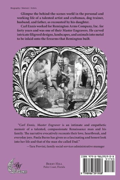 Glimpse the behind-the-scenes world in the personal and working life of a talented artist and craftsman, dog trainer, husband, and father, as recounted by his daughter. Carl Ennis, worked for Remington Arms Company, Inc. for forty years and was one of their Master Engravers. He carved intricate filigreed designs, landscapes, and animals onto metal to be inlaid onto the firearms that Remington built.
