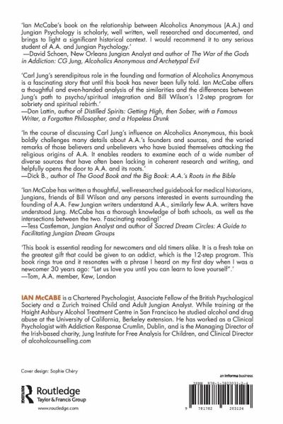 The author visited the archives of the headquarters of A.A. in New York, and discovered new communications between Carl Jung and Bill Wilson. For the first time this correspondence shows Jung's respect for A.A. and in turn, its influence on him. In particular, this research shows how Bill Wilson was encouraged by Jung's writings to promote the spiritual aspect of recovery as opposed to the conventional medical model which has failed so abysmally. The book overturns the long-held belief that Jung distrusted groups. Indeed, influenced by A.A.'s success, Jung gave "complete and detailed instructions" on how the A.A. group format could be developed further and used by "general neurotics". Wilson was an advocate of treating some alcoholics with LSD in order to deflate the ego and induce a spiritual experience. The author explains how alcoholism can be diagnosed and understood by professionals and the lay person; by examining the detailed case histories of Jung, the author gives graphic examples of its psychological and behavioural manifestations.