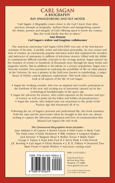 The American astronomer Carl Sagan (1934-1996) was one of the best-known scientists of his time. A prolific writer and television personality, he was creator and host of Cosmos, an enormously popular television series that explained the wonders and intricacies of astronomy to millions of television viewers. Gifted with the ability to communicate difficult scientific concepts to the average person, Sagan opened up the wonders of science to hundreds of thousands more through his many books and magazine articles. But in addition to his talents as a science popularizer, Sagan was a first-rate scientist. Ever persistent in exploring the possibility of life on other planets in the Universe, he was a pioneer in the field now known as astrobiology, a major thrust of NASA's current planetary explorations This book takes a fascinating look at all aspects of the life of Carl Sagan: Sagan the working scientist, who was an inspired and creative participant in the forefront of the new and exciting era of astronomy opened up by the technological breakthroughs of the space age; Sagan the advocate for science, who could expound on the beauties and joys of science as well as point out the follies and foibles of pseudoscience; and Sagan the activist, who helped raise our awareness to the perils of the Nuclear Age that threatened all of us. Following the arc of Sagan's personal and professional life, this book examines both the man and the provocative ideas he brought to this new era, always seeking to capture the infectious enthusiasm and love of communication that infused Carl Sagan's life and work.