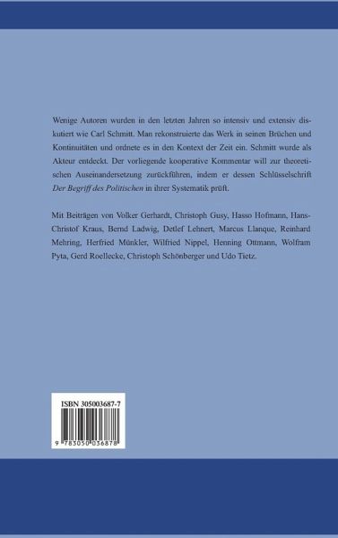 Wenige Autoren wurden in den letzten Jahren so intensiv und extensiv diskutiert wie Carl Schmitt. Man rekonstruierte das Werk detailliert in seinen Brüchen und Kontinuitäten und ordnete es in den historischen Kontext der Zeit ein. Schmitt wurde als Akteur entdeckt. Der vorliegende kooperative Kommentar will zur theoretischen Auseinandersetzung zurückführen, indem er dessen Schlüsselschrift "Der Begriff des Politischen" in ihrer internen Kohärenz und Systematik prüft und ihre Reichweite auslotet.