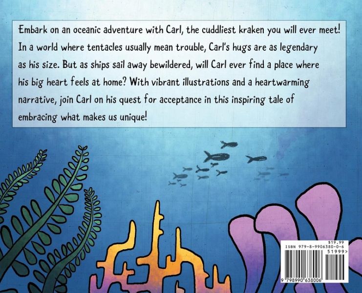 Embark on an oceanic adventure with Carl, the cuddliest kraken you'll ever meet! In a world where tentacles usually mean trouble, Carl's hugs are as legendary as his size. But as ships sail away bewildered, will Carl ever find a place where his big heart feels at home? With vibrant illustrations and a heartwarming narrative, join Carl on his quest for acceptance in this heartwarming tale of embracing what makes us unique!