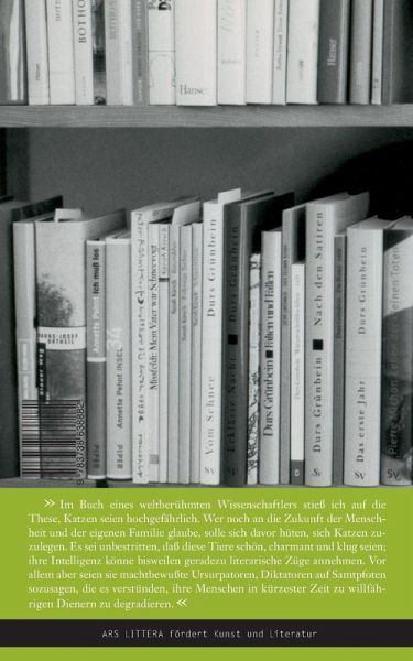 »Im Buch eines weltberühmten Wissenschaftlers stieß ich auf die These, Katzen seien hochgefährlich. Wer noch an die Zukunft der Menschheit und der eigenen Familie glaube, solle sich davor hüten, sich Katzen zuzulegen. Es sei unbestritten, daß diese Tiere schön, charmant und klug seien; ihre Intelligenz könne bisweilen geradezu literarische Züge annehmen. Vor allem aber seien sie machtbewußte Ursurpatoren, Diktatoren auf Samtpfoten sozusagen, die es verstünden, ihre Menschen in kürzester Zeit zu willfährigen Dienern zu degradieren.«