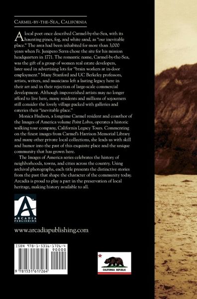 A local poet once described Carmel-by-the-Sea, with its haunting pines, fog, and white sand, as "our inevitable place." The area had been inhabited for more than 3,000 years when Fr. Junipero Serra chose the site for his mission headquarters in 1771. The romantic name, Carmel-by-the-Sea, was the gift of a group of women real estate developers, later used in advertising lots for "brain workers at in-door employment." Many Stanford and UC Berkeley professors, artists, writers, and musicians left a lasting legacy here in their art and in their rejection of largescale commercial development. Although impoverished artists may no longer afford to live here, many residents and millions of sojourners still consider the lovely village packed with galleries and eateries their "inevitable place."