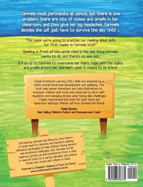 Carmela must participate at school, but there is one problem: there are lots of noises and smells in her classroom, and they give her big headaches. Carmela decides she will just have to survive the day. Until ... "This week we're going to practise our reading aloud skills. Our first reader is Carmela Wolf." Reading in front of the whole class is the last thing Carmela wants to do, and there's no way out. It'll be up to Carmela to overcome her fears, cope with the sights and smells around her, and learn what it means to be brave.