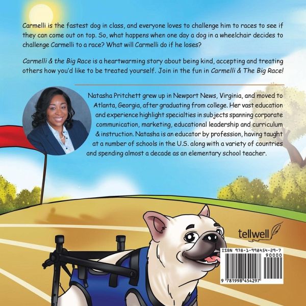 Carmelli is the fastest dog in class, and everyone loves to challenge him to races to see if they can come out on top. So, what happens when one day a dog in a wheelchair decides to challenge Carmelli to a race? What will Carmelli do if he loses? Carmelli & the Big Race is a heartwarming story about being kind, accepting and treating others how you'd like to be treated yourself. Join in the fun in Carmelli & The Big Race!