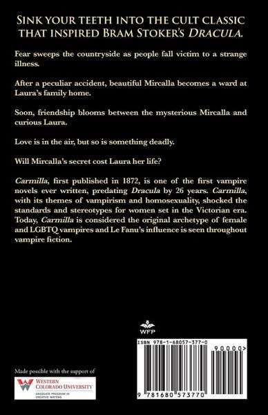 Sink your teeth into the cult classic that inspired Bram Stoker's Dracula. Fear sweeps the countryside as people fall victim to a strange illness. After a peculiar accident, beautiful Mircalla becomes a ward at Laura's family home. Soon, friendship blooms between the mysterious Mircalla and curious Laura. Love is in the air, but so is something deadly. Will Mircalla's secret cost Laura her life? Carmilla, first published in 1872, is one of the first vampire novels ever written, predating Dracula by 26 years. Carmilla, with its themes of vampirism and homosexuality, shocked the standards and stereotypes for women set in the Victorian era. Today, Carmilla is considered the original archetype of female and LGBTQ vampires and Le Fanu's influence is seen throughout vampire fiction.