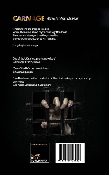 Fifteen teens are trapped in a zoo where the animals have mysteriously gotten loose. Smarter and stronger than they should be, they're working together to kill humans. It's going to be carnage. 'One of the UK's most promising writers' Edinburgh Evening News 'One of the UK's best new talents' Lovereading.co.uk 'Jan Henderson writes the kind of thrillers that make you miss your stop on the bus' The Times Educational Supplement 'Jan Henderson has written some incredible books... One of my favourite authors' Sharon Rooney (star of My Mad Fat Diary and Barbie) 'If there were more books like yours out there maybe boys would be reading more' Charlie Higson (Young James Bond and The Enemy series)