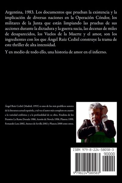 Argentina, 1983. Los documentos que prueban la existencia y la implicación de diversas naciones en la Operación Cóndor, los militares de la Junta que están limpiando las pruebas de sus acciones durante la dictadura y la guerra sucia, las decenas de miles de desaparecidos, los Vuelos de la Muerte y el amor, son los ingredientes con los que Ángel Ruiz Cediel construye la trama de este thriller de alta intensidad. Y en medio de todo ello, una historia de amor en el infierno.