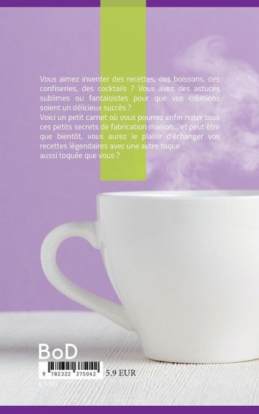 Vous aimez inventer des recettes, des boissons, des confiseries, des cocktails ? Vous avez des astuces sublimes ou fantaisistes pour que vos créations soient un délicieux succès ? Voici un petit carnet où vous pourrez enfin noter tous ces petits secrets de fabrication maison... et peut être que bientôt, vous aurez le plaisir d'échanger vos recettes légendaires avec une autre toque aussi toquée que vous ?