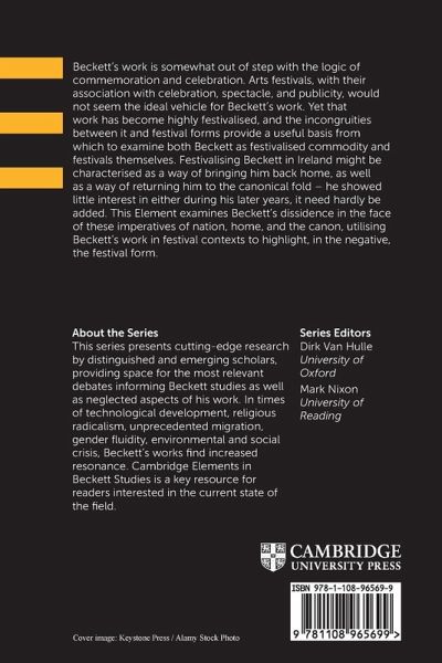 This Element examines Beckett's dissidence in the face of the imperatives of nation, home and the canon, utilising Beckett's work in festival contexts to highlight in the negative the nature of the festival form and to critique the festivalisation of culture.