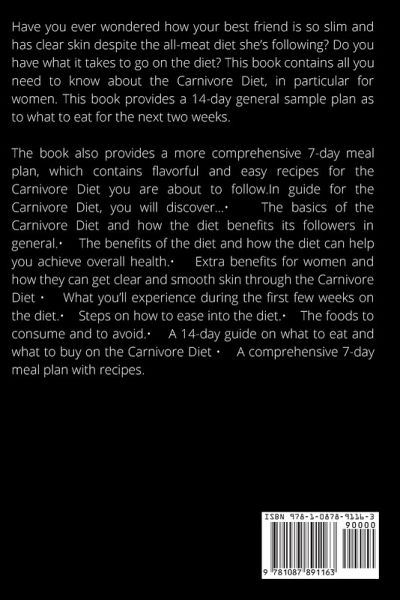 Have you ever wondered how your best friend is so slim and has clear skin despite the all-meat diet she's following? Do you have what it takes to go on the diet? This book contains all you need to know about the Carnivore Diet, in particular for women. This book provides a 14-day general sample plan as to what to eat for the next two weeks. The book also provides a more comprehensive 7-day meal plan, which contains flavorful and easy recipes for the Carnivore Diet you are about to follow. In this guide for the Carnivore Diet, you will discover... ¿ The basics of the Carnivore Diet and how the diet benefits its followers in general. ¿ The benefits of the diet and how the diet can help you achieve overall health. ¿ Extra benefits for women and how they can get clear and smooth skin through the Carnivore Diet ¿ What you'll experience during the first few weeks on the diet. ¿ Steps on how to ease into the diet. ¿ The foods to consume and to avoid. ¿ A 14-day guide on what to eat and what to buy on the Carnivore Diet ¿ A comprehensive 7-day meal plan with recipes.