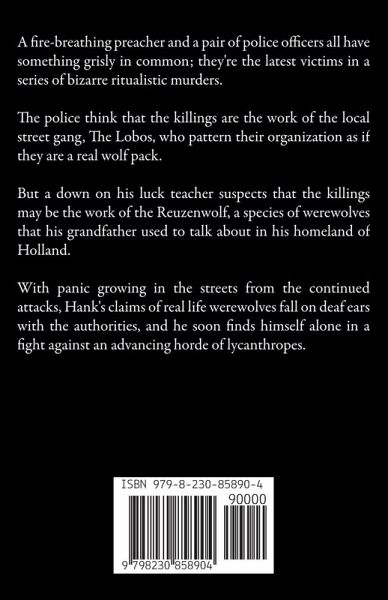 A fire-breathing preacher and a pair of police officers all have something grisly in common; they're the latest victims in a series of bizarre ritualistic murders. The police think that the killings are the work of the local street gang, The Lobos, who pattern their organization as if they are a real wolf pack. But a down on his luck teacher suspects that the killings may be the work of the Reuzenwolf, a species of werewolves that his grandfather used to talk about in his homeland of Holland. With panic growing in the streets from the continued attacks, Hank's claims of real life werewolves fall on deaf ears with the authorities, and he soon finds himself alone in a fight against an advancing horde of lycanthropes.