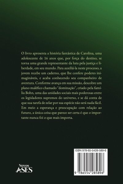 O livro apresenta a história fantástica de Carolina, uma adolescente de 16 anos que, por força do destino, se torna uma grande representante da luta pela justiça e liberdade, em seu mundo. Para auxiliá-la neste processo, a jovem recebe um caderno, que lhe confere poderes inimagináveis, e acaba conhecendo seu companheiro de aventura. Conforme avança em sua missão, descobre um plano maléfico chamado "dominação", criado pela família Bohn, uma das unidades sociais mais poderosas entre os legisladores supremos do universo, e se dá conta de que sua tarefa de zelar por sua espécie não será nada fácil. Em meio a esperança e preocupação com relação ao futuro, a única coisa que parece ser certa é que o importante nunca foi o que mais importa.