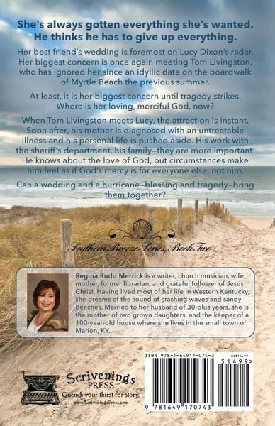 She's always gotten everything she's wanted. He thinks he has to give up everything. Her best friend's wedding is foremost on Lucy Dixon's radar. Her biggest concern is once again meeting Tom Livingston, who has ignored her since an idyllic date on the boardwalk of Myrtle Beach the previous summer. At least, it is her biggest concern until tragedy strikes. Where is her loving, merciful God, now? When Tom Livingston meets Lucy, the attraction is instant. Soon after, his mother is diagnosed with an untreatable illness, and his personal life is pushed aside. His work with the sheriff's department, his family-they are more important. He knows about the love of God, but circumstances make him feel as if God's mercy is for everyone else, not him. Can a wedding and a hurricane-blessing and tragedy-bring them together?