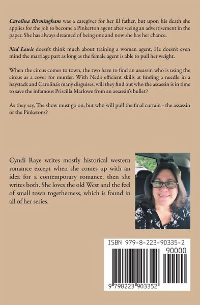 Carolina Birmingham was a caregiver for her ill father, but upon his death she applies for the job to become a Pinkerton agent after seeing an advertisement in the paper. She has always dreamed of being one and now she has her chance. Ned Lewis doesn't think much about training a woman agent. He doesn't even mind the marriage part as long as the female agent is able to pull her weight. When the circus comes to town, the two have to find an assassin who is using the circus as a cover for murder. With Ned's efficient skills at finding a needle in a haystack and Carolina's many disguises, will they find out who the assassin is in time to save the infamous Priscilla Marlowe from an assassin's bullet? As they say, The show must go on, but who will pull the final curtain - the assassin or the Pinketons?