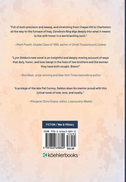 CAROLINA'S RING is a modern coming-of-age story between Carolina Stone and childhood friends, twin brothers Ben and Alf Marshall. With unexpected life-or-death events shaping their futures, Carolina's Ring follows these three friends from the foothills of South Carolina to the campuses of the Virginia Military Institute and e Citadel, and ultimately to the Global War on Terrorism in Iraq and beyond.