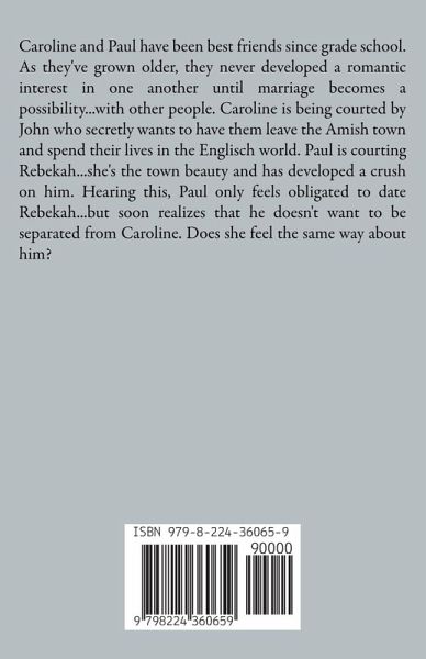 Caroline and Paul have been best friends since grade school. As they've grown older, they never developed a romantic interest in one another until marriage becomes a possibility...with other people. Caroline is being courted by John who secretly wants to have them leave the Amish town and spend their lives in the Englisch world. Paul is courting Rebekah...she's the town beauty and has developed a crush on him. Hearing this, Paul only feels obligated to date Rebekah...but soon realizes that he doesn't want to be separated from Caroline. Does she feel the same way about him?