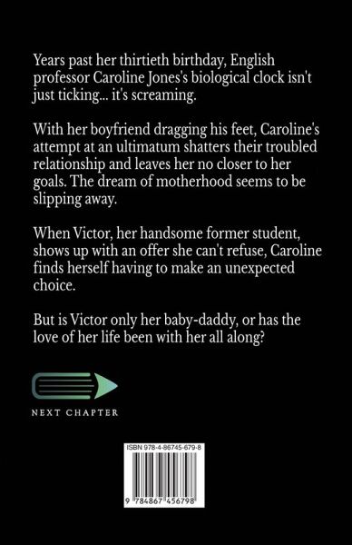 Years past her thirtieth birthday, English professor Caroline Jones's biological clock isn't just ticking... it's screaming. With her boyfriend dragging his feet, Caroline's attempt at an ultimatum shatters their troubled relationship and leaves her no closer to her goals. The dream of motherhood seems to be slipping away. When Victor, her handsome former student, shows up with an offer she can't refuse, Caroline finds herself having to make an unexpected choice. But is Victor only her baby-daddy, or has the love of her life been with her all along? This book contains graphic sex and is not suitable for readers under the age of 18.
