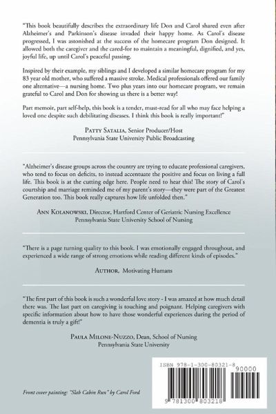 Alzheimer's disease groups across the country are trying to educate professional caregivers, who tend to focus on deficits, to instead accentuate the positive and focus on living a full life. This book is at the cutting edge here. People need to hear this. The story of Carol's courtship and marriage reminded me of my parent's story - they were part of the Greatest Generation too. This book really captures how life unfolded then.