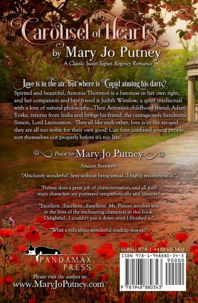 A Classic Sweet Regency Romance Love is in the air, but where is Cupid aiming his darts? Spirited and beautiful, Antonia Thornton is a baroness in her own right, and her companion and best friend is Judith Winslow, a quiet intellectual with a love of natural philosophy. Then Antonia's childhood friend, Adam Yorke, returns from India and brings his friend, the outrageously handsome Simon, Lord Launceston. They all like each other, love is in the air-and they are all too noble for their own good! Can four confused young people sort themselves out properly before it's too late? Putney Classic Romance: The Diabolical Baron, #1 Carousel of Hearts, #2 ¿About the Author A New York Times, Wall Street Journal, and USAToday bestselling author, Mary Jo Putney's novels are known for psychological depth and intensity. Winner of numerous writing awards, including two RITAs, three Romantic Times Career Achievement awards, and the Nora Roberts Lifetime Achievement Award from Romance Writers of America, she has had numerous books listed among Library Journal's and Booklist's top romances of the year.