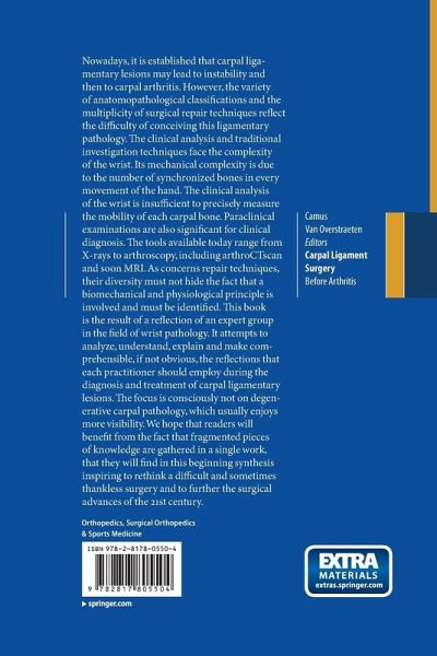 This book presents the findings of an expert group in the field of wrist pathology. It seeks to analyze, understand, explain and make comprehensible, if not obvious, the reflections that each practitioner should employ during the diagnosis and treatment of carpal ligamentary lesions. The focus is consciously not on degenerative carpal pathology, which usually enjoys more visibility. We hope that readers will benefit from the fact that fragmented pieces of knowledge are gathered in a single work, that they will find in this initial synthesis an inspiration to rethink a difficult and sometimes thankless surgery and to further the surgical advances of the 21st century.