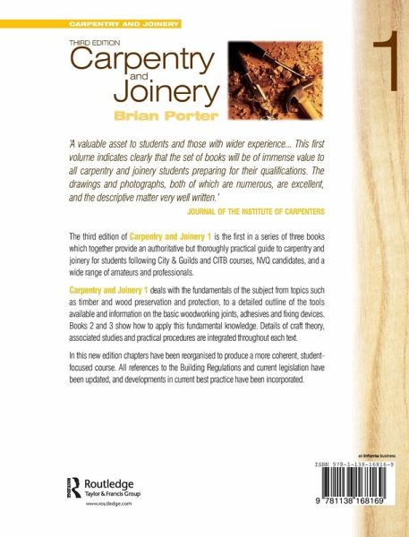 The third edition of Carpentry and Joinery 1 is the first in a series of three books which together provide an authoritative but thoroughly practical guide to carpentry and joinery for students following City & Guilds and CITB courses, NVQ candidates, and a wide range of amateurs and professionals.Carpentry and Joinery 1 deals with the fundamentals of the subject from topics such as timber and wood preservation and protection, to a detailed outline of the tools available and information on the basic woodworking joints, adhesives and fixing devices. Books 2 and 3 show how to apply this fundamental knowledge. Details of craft theory, associated studies and practical procedures are integrated throughout each text. In this new edition chapters have been reorganised to produce a more coherent, student-focused course. All references to the Building Regulations and current legislation have been updated, and developments in current best practice have been incorporated.