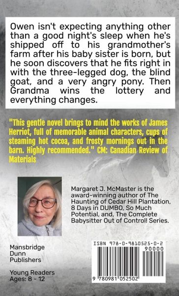 Owen isn't expecting anything other than a good night's sleep when he's shipped off to his grandmother's farm after his baby sister is born, but he soon discovers that he fits right in with the three-legged dog, the blind goat, and a very angry pony. Then Grandma wins the lottery and everything changes.